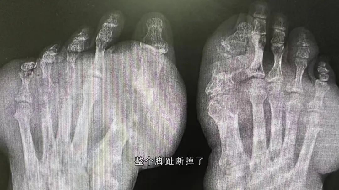广医二院风湿免疫科主任医师于水莲表示,我们知道软骨是没有痛觉的,拿刀切它都不会痛,一旦软骨破坏之后,就会出现软骨下的骨侵蚀。有些患者的痛风石长在第一根大脚趾,就是第一指趾关节,拍了X光片甚至可以看到整个脚趾断掉了,这就是所说的痛风骨侵蚀。