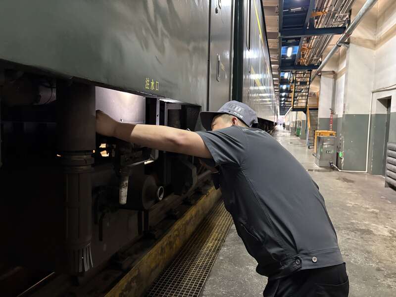 随着列车不断更新换代,真空集便器成了标配,检修任务越来越重。采访当天,李明松带中青报·中青网记者看了一下他们的工作流程。登上列车,首先要检查厕所内的各种部件,看看是否有损坏。然后,检查车门是否开关正常。最后,下车拿起吸污管对准污水箱,完成排污。