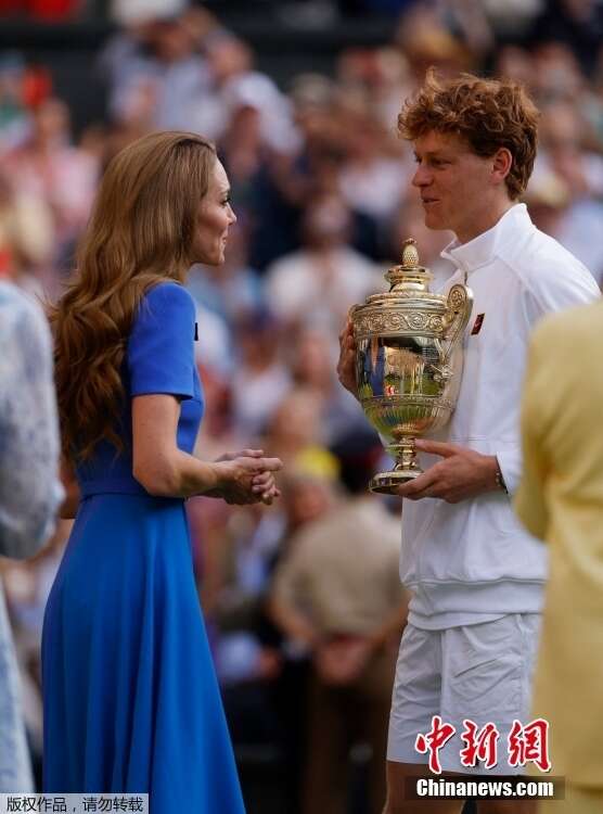 英国凯特王妃为新科温网冠军辛纳颁奖。