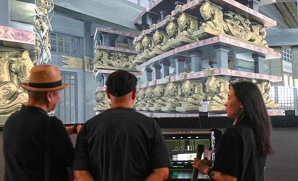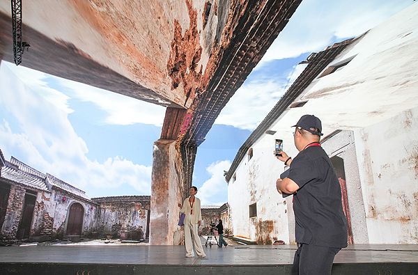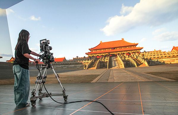 2025年7月14日,浙江湖州,参观者在德清博采AI虚拟影视基地体验AI虚拟制片技术。
