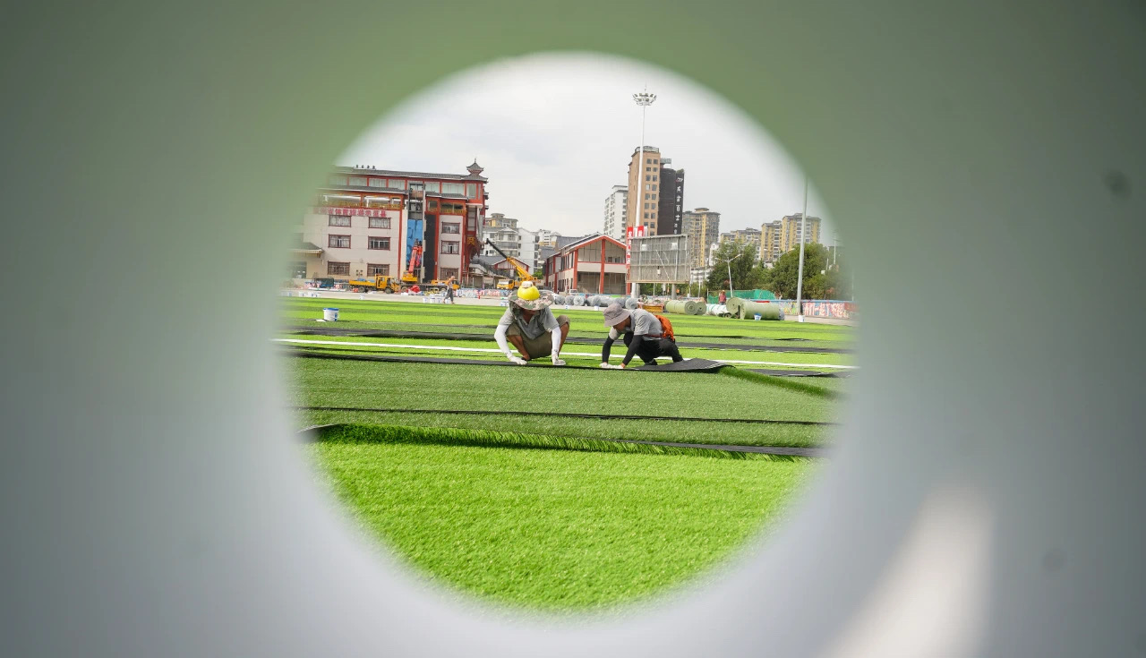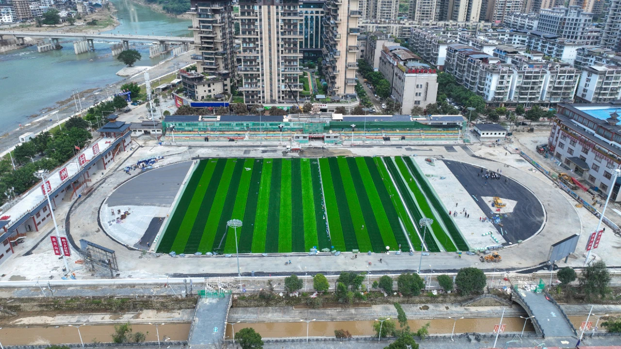 “昨天已经铺完草,当下正加班加点推进周边的附属工程建设。”杨亚江表示,按照预定时间开赛应该没有问题。