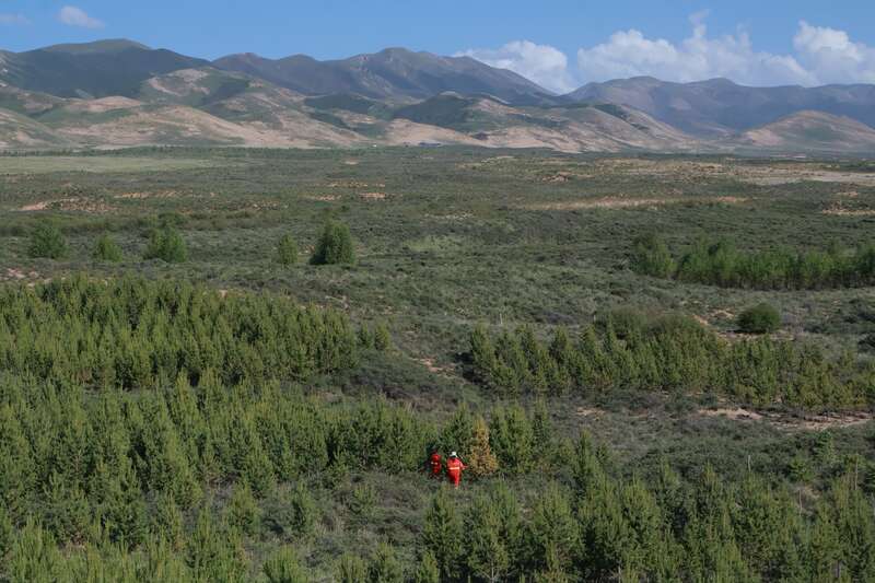 从1980年开始,海晏县林业草原部门坚持防沙工作,坚持“一代接着一代干,一张蓝图绘到底”,采取“以封为主封造结合”的治沙方法,创新固沙方式,调整树种结构,试验成功了“沙棘营养土坨造林、乌柳截杆深栽造林、容器苗造林”等一系列适合高寒沙区的先进实用技术。