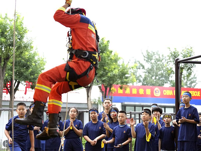 2025年7月14日,由北京市西城区消防救援支队主办的“第一届蓝焰领航·暑期消防研学成长营”正式开营。本次活动以“通过一个孩子,带动一个家庭,影响整个社会”为宗旨,旨在通过沉浸式课程和职业体验,提升青少年的消防安全素养和应急实践能力。活动将分成两期,每期为时三天,孩子们可以在研学期间学习消防知识、掌握逃生技能、感受消防文化。