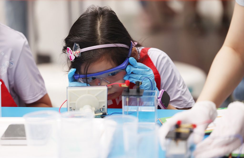 2025年7月15日,北京,一年一度的“小小化学家”活动在中国科学技术馆开幕。今年推出的全新实验“电池的奥秘”和“电解魔法探索”在暑期为小朋友们解析电池背后的化学原理,探索电解的多种应用可能。即日起至 7 月 20 日,6 到 12 周岁的儿童可前往中国科学技术馆报名参与实验活动。
