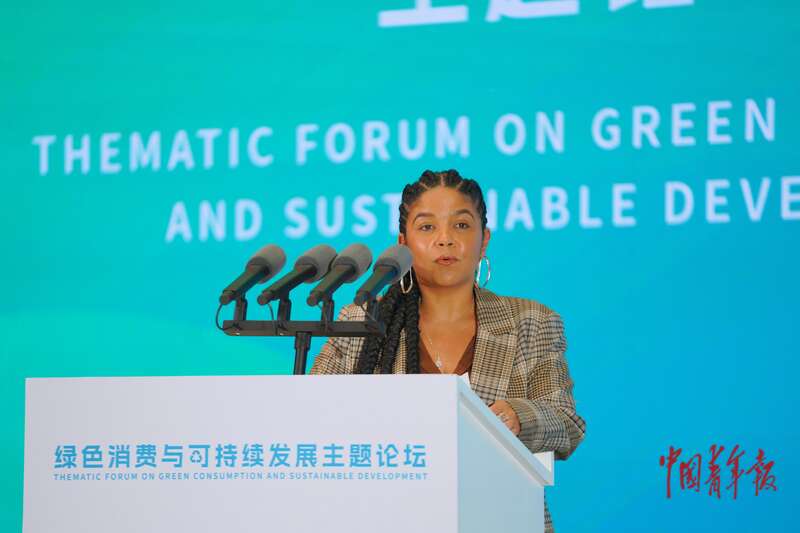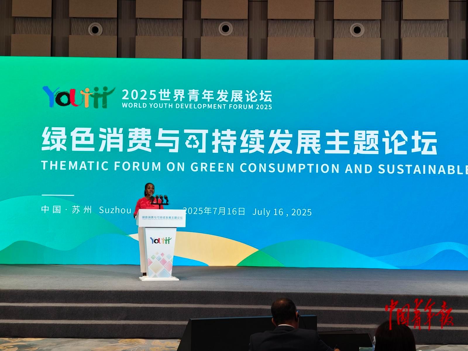 7月16日,江苏苏州,2025年世界青年发展论坛绿色消费与可持续发展主题论坛上,巴西总统府青年事务副国务秘书杰西·达亚内发表主旨演讲。中青报·中青网记者 田嘉硕/摄