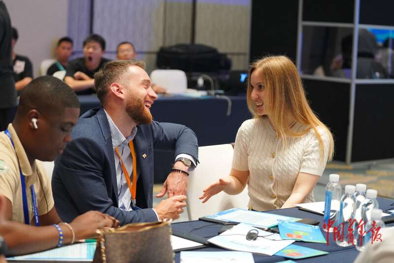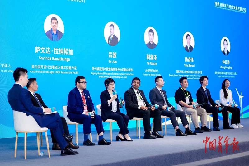 7月16日,江苏苏州,2025年世界青年发展论坛绿色消费与可持续发展主题论坛上,青年对话环节,中外青年代表就“青年消费新场景、新业态”议题展开讨论。主办方供图