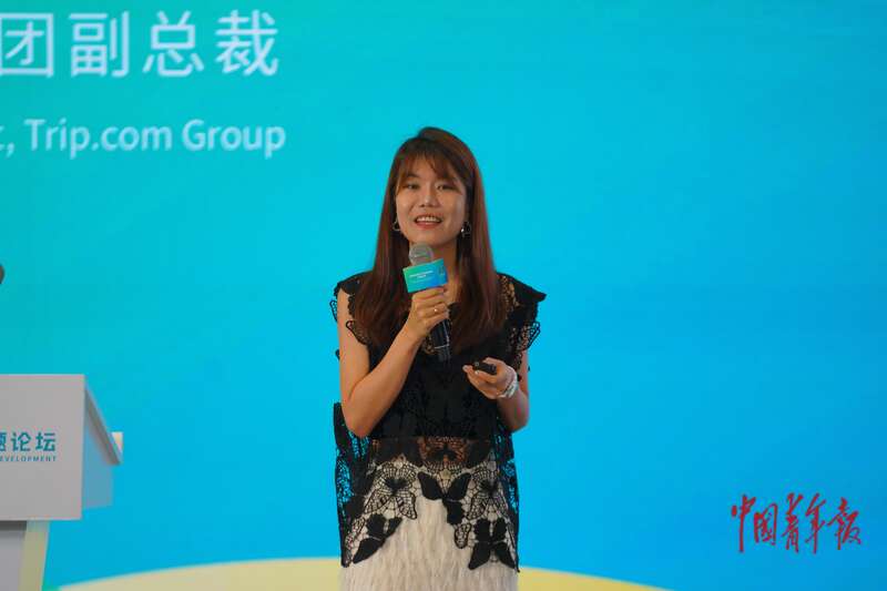 7月16日,江苏苏州,2025年世界青年发展论坛绿色消费与可持续发展主题论坛上,携程集团副总裁秦静发表主旨演讲。中青报·中青网记者 田嘉硕/摄