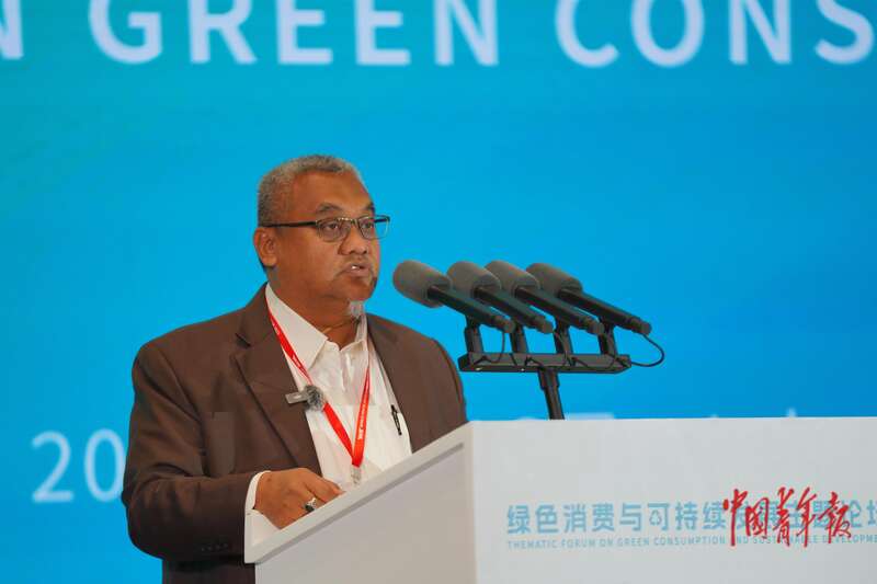 7月16日,江苏苏州,2025年世界青年发展论坛绿色消费与可持续发展主题论坛上,东盟青年合作委员会秘书长莫哈德·扎伊迪·阿齐兹发表主旨演讲。中青报·中青网记者 田嘉硕/摄
