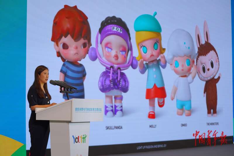 7月16日,江苏苏州,2025年世界青年发展论坛绿色消费与可持续发展主题论坛上,泡泡玛特副总裁陈晓芸发表主旨演讲。中青报·中青网记者 田嘉硕/摄