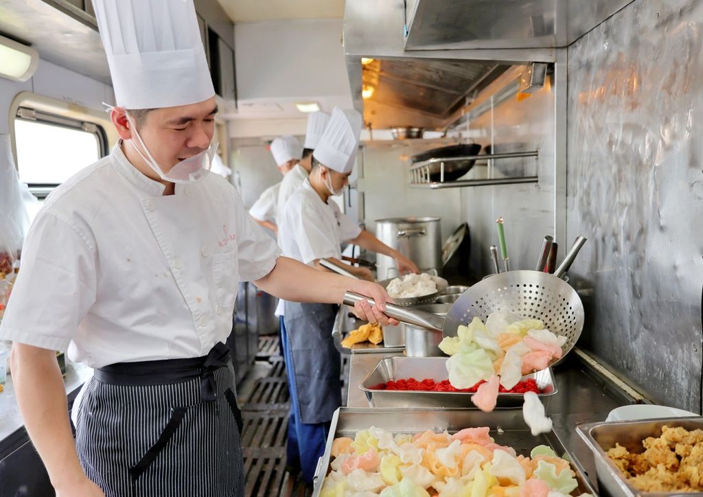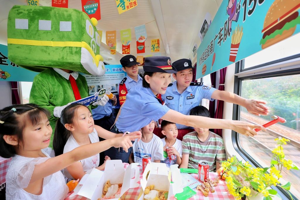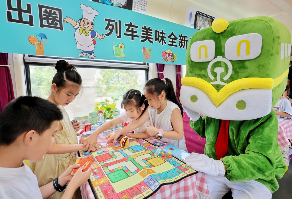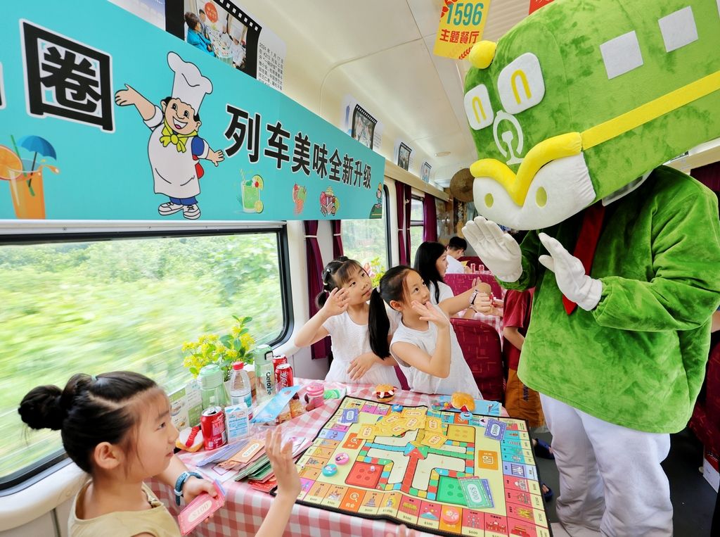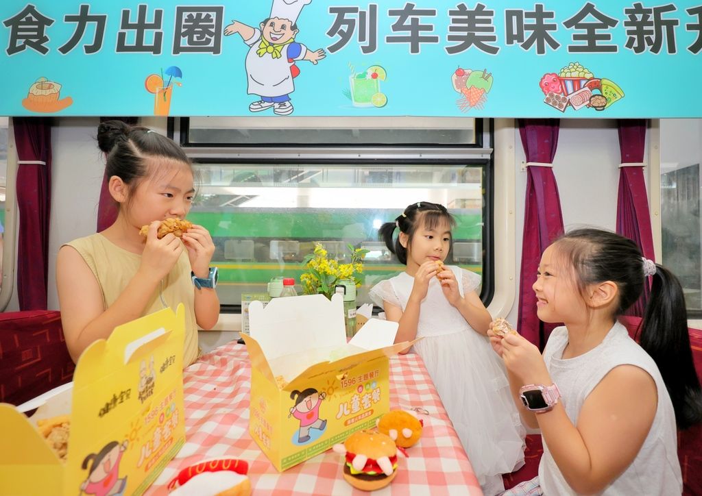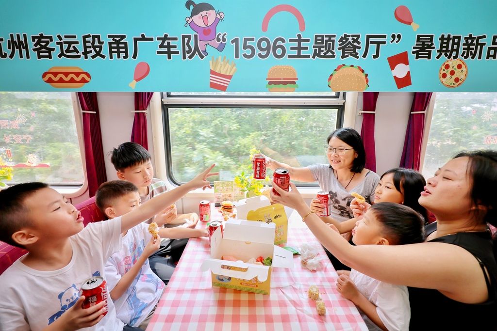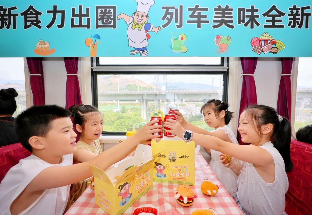 2025年7月15日,正值暑运期间,广州开往宁波的K210次列车上,杭州铁路客运段推出全新升级版的儿童套餐,邀请儿童及家长至餐车品尝美味佳肴。
