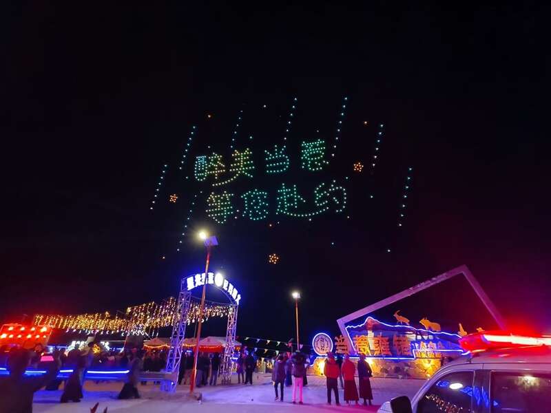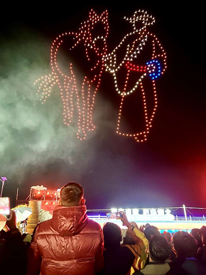 尼玛县平均海拔5000米,低压、低温、强风等极端环境对无人机性能有着极为严苛的要求。大规模无人机编队在当惹雍错的星空中,用光影讲诉尼玛的过去与现在。表演中,“藏野牦牛”脚踏星光,“夏桑马车岩画”在光影中苏醒,“那仓服饰”绽放绚丽色彩,“牧民与马”徐徐而行,“达果雪山”与“当惹雍错”以雪山的脊梁与圣湖的柔波,书写着尼玛儿女永恒的寄托……