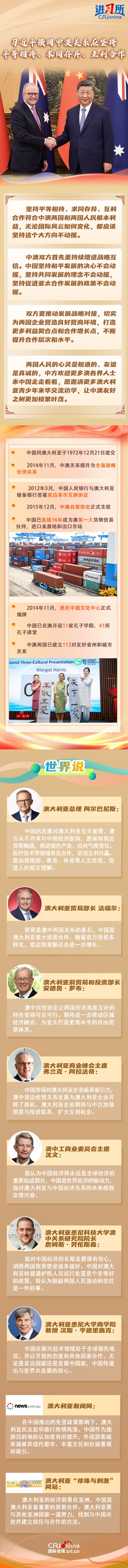 近年来,在双方共同努力下,中澳关系走出低谷、实现转圜,给两国人民带来了实实在在福祉。中澳全面战略伙伴关系已经开启第二个10年,迎来又一个重要发展阶段,澳方各界人士及媒体认为,中国的发展对澳大利亚至关重要,澳大利亚要与其他亚洲国家一道努力,找到与中国共处并建立信任与合作的方法。