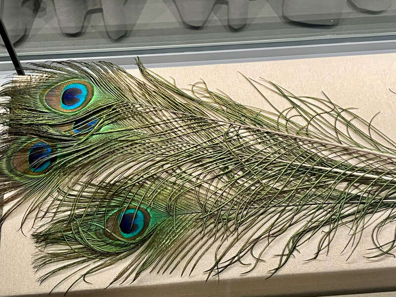 《红楼梦》第五十二回“俏平儿情掩虾须镯,勇晴雯病补雀金裘”。文中说道,此物金翠辉煌,碧彩闪灼,是俄罗斯拿孔雀毛拈了线织的。