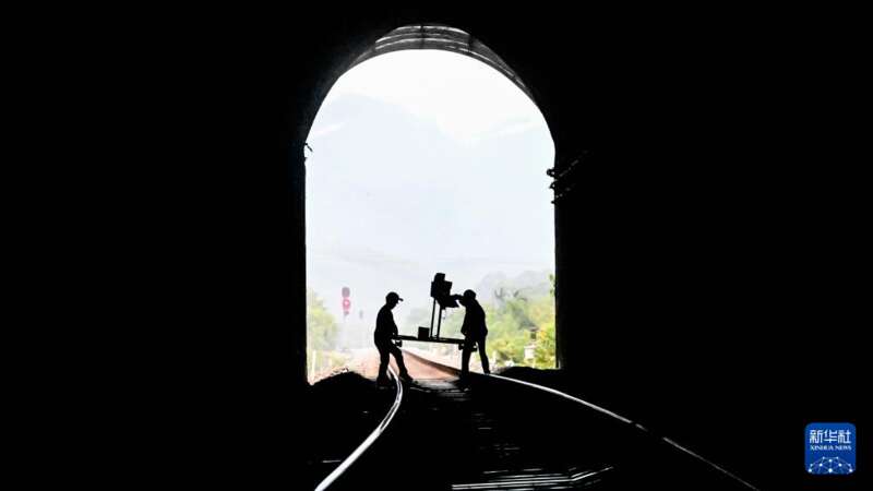 暑运期间,在湘桂铁路(广西段)沿线,国铁南宁局桂林工务段13名桥隧工人日夜穿梭于桂北的崇山峻岭间,对管段内的10座隧道、1075座涵洞进行多维度巡检、排查隐患,确保湘桂铁路线上暑运客货列车的安全运行。