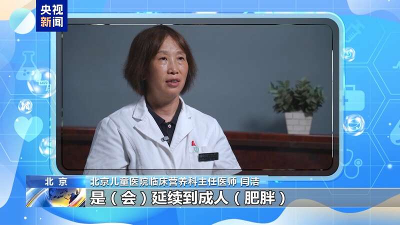 北京儿童医院临床营养科主任医师 闫洁:这种说法是不对的,这就是减重的误区。60%至70%的肥胖儿童、青少年,是会延续到成人肥胖,他们是成人肥胖非常大的基础数据。所以说要从儿童、青少年开始控制,才能减少成人的肥胖。