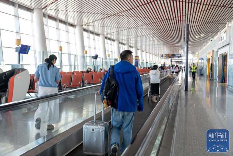 ↑ 7月18日,旅客在拉萨贡嘎国际机场T3航站楼前往登机口。