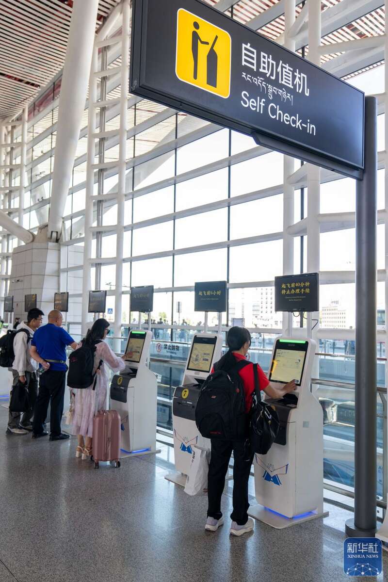 ↑ 7月18日,旅客在拉萨贡嘎国际机场自助值机。