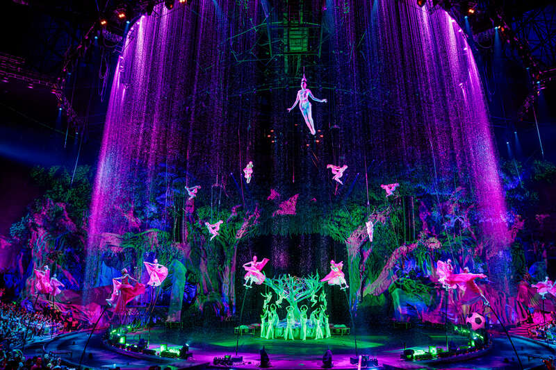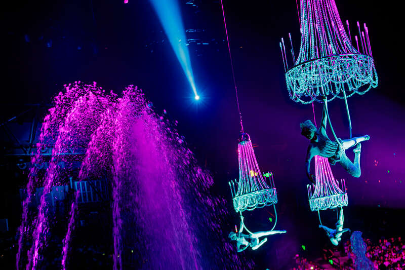 现场,《流光梦舞》引领观众步入如梦似幻的魔域仙境;《烈焰先锋》以力量与奔放的激情瞬间点燃全场;《幻境》的视觉呈现,将欢乐气氛推向顶点。小丑互动、马术表演、空中芭蕾等全新升级的国际大马戏剧目,通过高空特技与互动氛围,为观众创造专属马戏记忆。