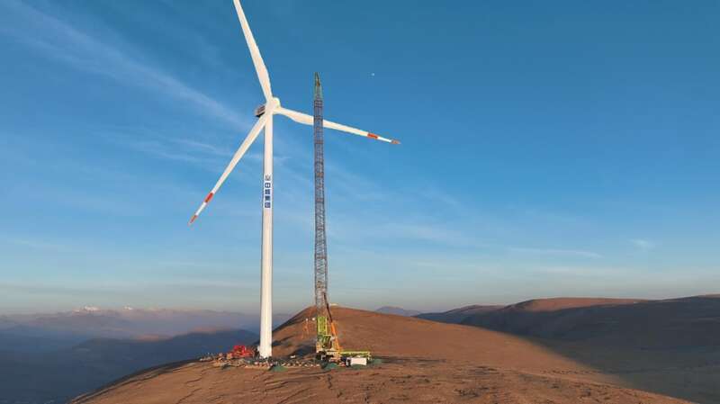 “风电场区最高海拔为5194米,该项目总装机容量30万千瓦,其中风电装机20万千瓦,创新性地采用‘风电场+光伏电站+储能系统’三位一体的开发模式,带来更稳定、高效和可持续的能源解决方案。项目年平均发电量超过5.7亿千瓦时,相当于每年可节约标准煤16.42万吨,减排二氧化碳45.01万吨、二氧化硫45.34吨,环境效益显著。”