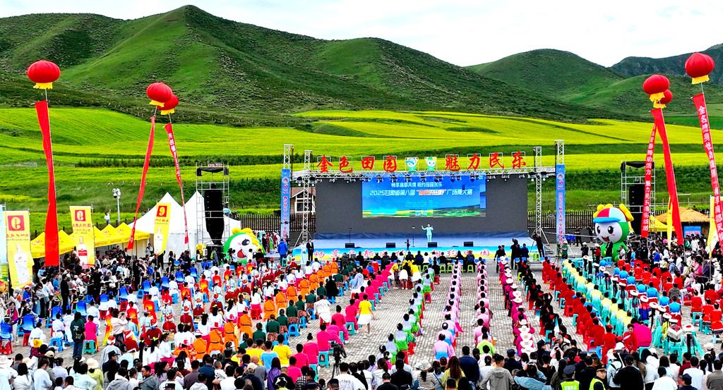 当日,在万亩油菜花盛开的甘肃省张掖市民乐县扁都口景区,2025年甘肃省第八届“金色的田野”广场舞大赛激情开赛,来自甘肃14个地州市的22支优秀广场舞队伍以“舞”会友,参加了比赛,《大河之魂》《奔腾》《中国龙》《草原欢歌》《格桑花盛开的地方》《中国梦》《草原姑娘》等节目轮番上场,为现场万名游客献上了一场精彩纷呈的视觉盛宴。