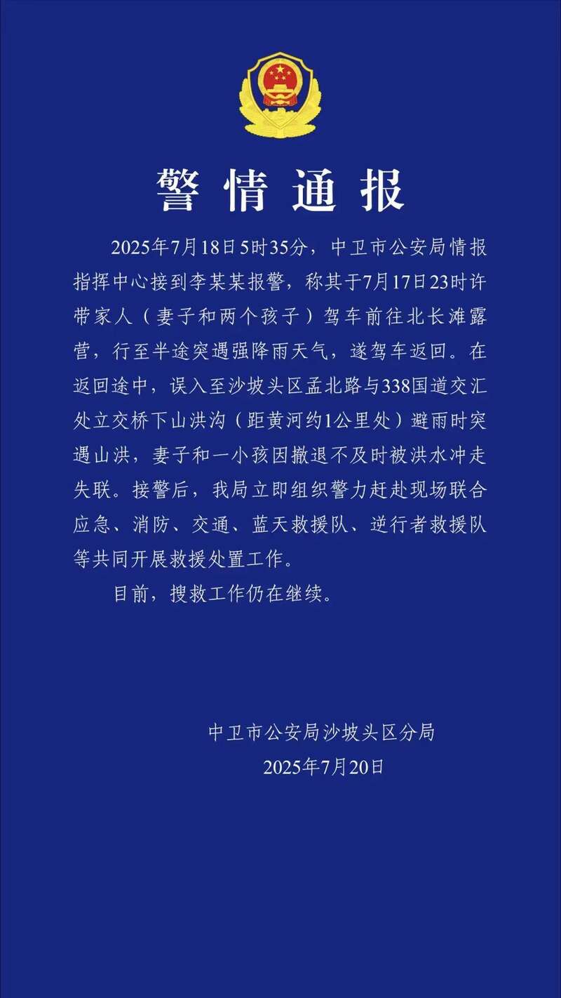 7月20日,宁夏中卫市公安局沙坡头区分局发布警情通报:
