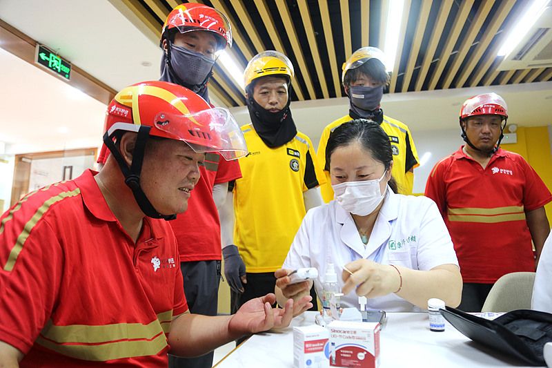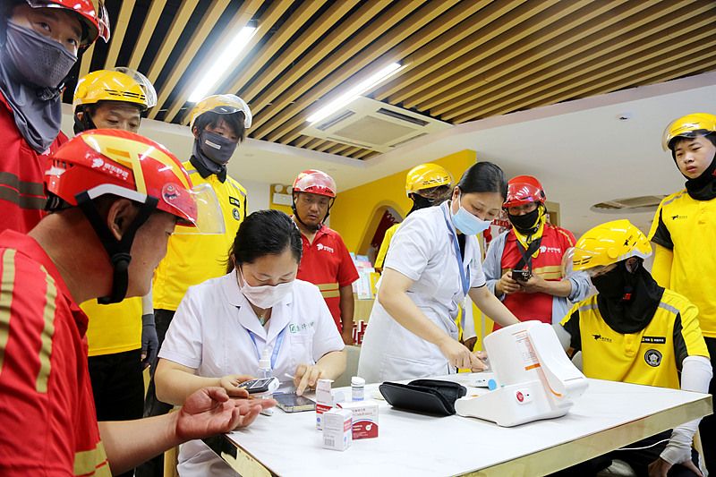 2025年7月21日,江苏省连云港市连云区市场监督管理局在连云区墟沟街道东园社区“连新续航驿站”开展“酷暑送清凉 安全伴骑行”活动,为外卖骑手进行安全教育、体检身体、赠送清凉饮品、防暑降温药、西瓜及多项服务,给外卖骑手炎热夏季带来清凉。