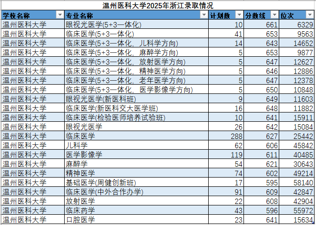 在浙江,还有一所非常受浙江考生青睐的医科类大学——温州医科大学。有风君对比了温医大近两年在浙江的分数线,分数线和位次号也是毫无悬念地下降了。