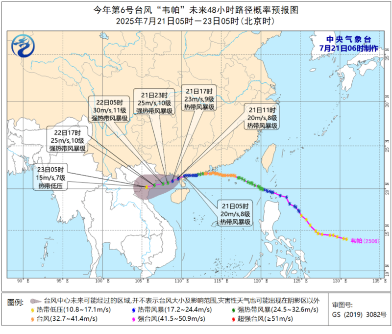 央视网消息:今年第6号台风“韦帕”于7月20日二次登陆广东,据气象部门预报,“韦帕”即将移入北部湾海面,强度将再度发展,其带来的强降雨仍在继续,全国范围降雨呈现多点势头。7月21日,中央气象台继续发布台风黄色预警和暴雨橙色预警。
