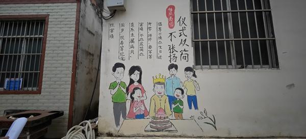 百色市弄耀村,村民用墙绘宣传移风易俗。江畅/摄