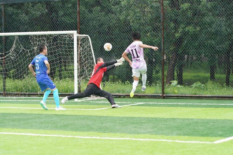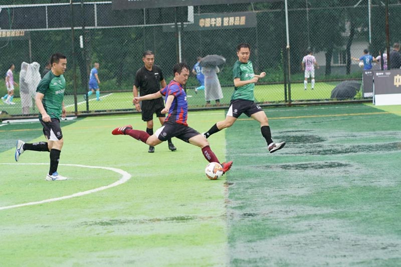 开幕式结束后,第四届蒙牛“迈胜杯”媒体足球冠军赛正式开赛。揭幕战由蒙牛对阵中国新闻网、ECO氪体对阵央广网,参赛队伍在雨中展开鏖战。