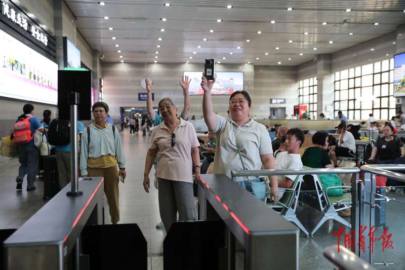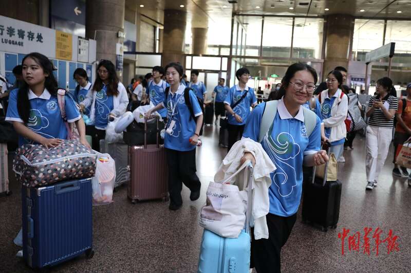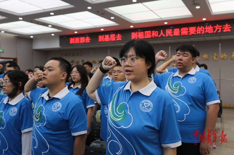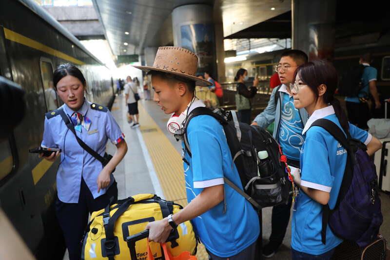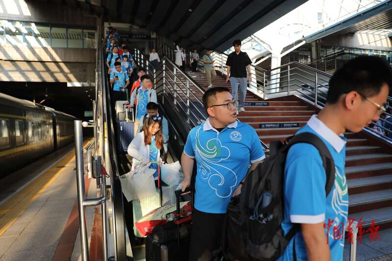 7月22日,北京西站,2025年北京市大学生志愿服务西部计划志愿者出征活动上,30余所在京高校招募选拔的120余名志愿者代表庄严宣誓,正式踏上新的征程。近日,各地各高校2025年新招募的4.8万余名大学生志愿服务西部计划志愿者陆续出征,奔赴西部和基层地区开展志愿服务。中青报·中青网记者 孔斯琪/摄