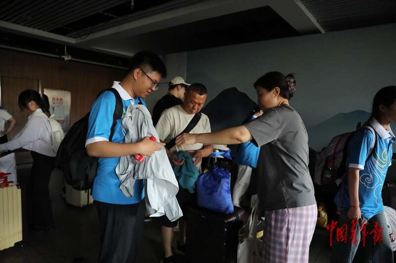7月22日,北京西站,一名西部计划志愿者的家长在为孩子整理行李。中青报·中青网记者 孔斯琪/摄