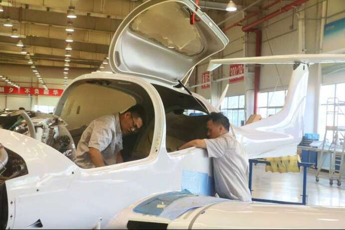 At AVIC (CETC) Wuhu Diamond Aircraft Manufacturing Co., Ltd., the majority of frontline skilled workers are local young people. In recent years, the local government has introduced corresponding talent policies, leading to an increasing number of R&D professionals returning to Anhui for employment. The photo shows young workers on the production line at the company's assembly plant.(Photo by Wang Haihan/China Youth Daily)