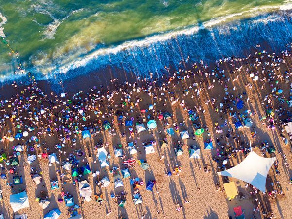 2025年7月26日,随着暑期旅游热潮的到来,山东日照万平口风景区海滨浴场成为一片欢乐的海洋,现场人山人海,热闹非凡。 当日,前来游玩的游客络绎不绝,沙滩上,五彩斑斓的遮阳伞如繁星般点缀,游客们或是悠闲地享受日光浴,或是在浅滩与海浪嬉戏。海面上,摩托艇、帆船等水上项目精彩纷呈,引得阵阵欢呼。