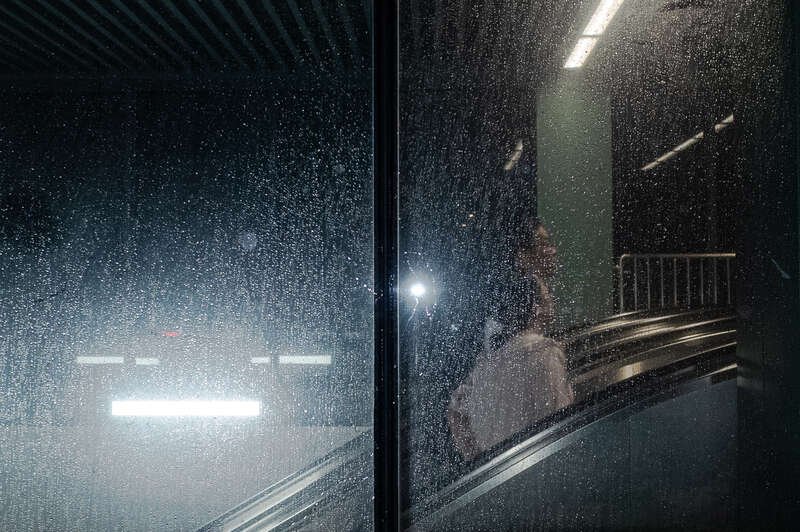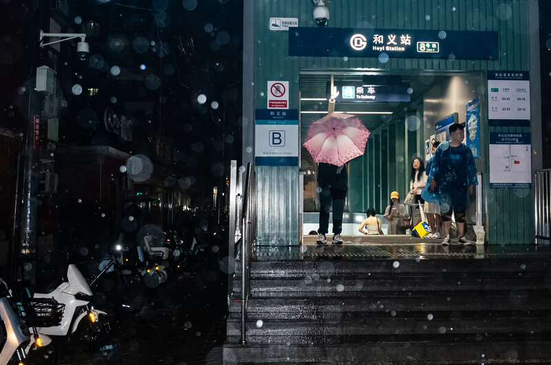 7月28日,北京,人们在地铁站等雨变小。姚沐含/摄