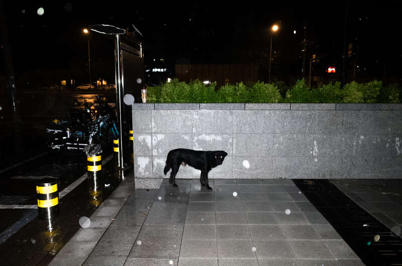 7月28日,北京,一条黑狗在暴雨中。姚沐含/摄