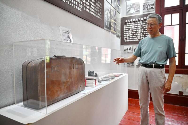 走进方大曾纪念室,不大的房间内,四面墙壁上布满方大曾的新闻作品。在房间的一端,方大曾的半身铜像占据着正中位置。在房间的另一端,玻璃展柜里一只旅行箱常吸引参观者驻足,这是方大曾唯一存世物品。