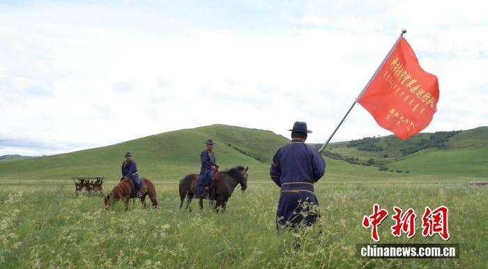 中新网兴安7月30日电(蒋豪文)盛夏时节,内蒙古自治区兴安盟乌兰毛都大草原碧空如洗,微风沁人。“石榴花开北疆红 籽籽同心家国情”网络主题宣传活动媒体团一行刚踏入草地,马儿的嘶鸣声以及旗帜在风中飘扬的声音便从不远处传来,科右前旗守望草原巡防队满族屯分队的队员们正微笑着向大家招手。
