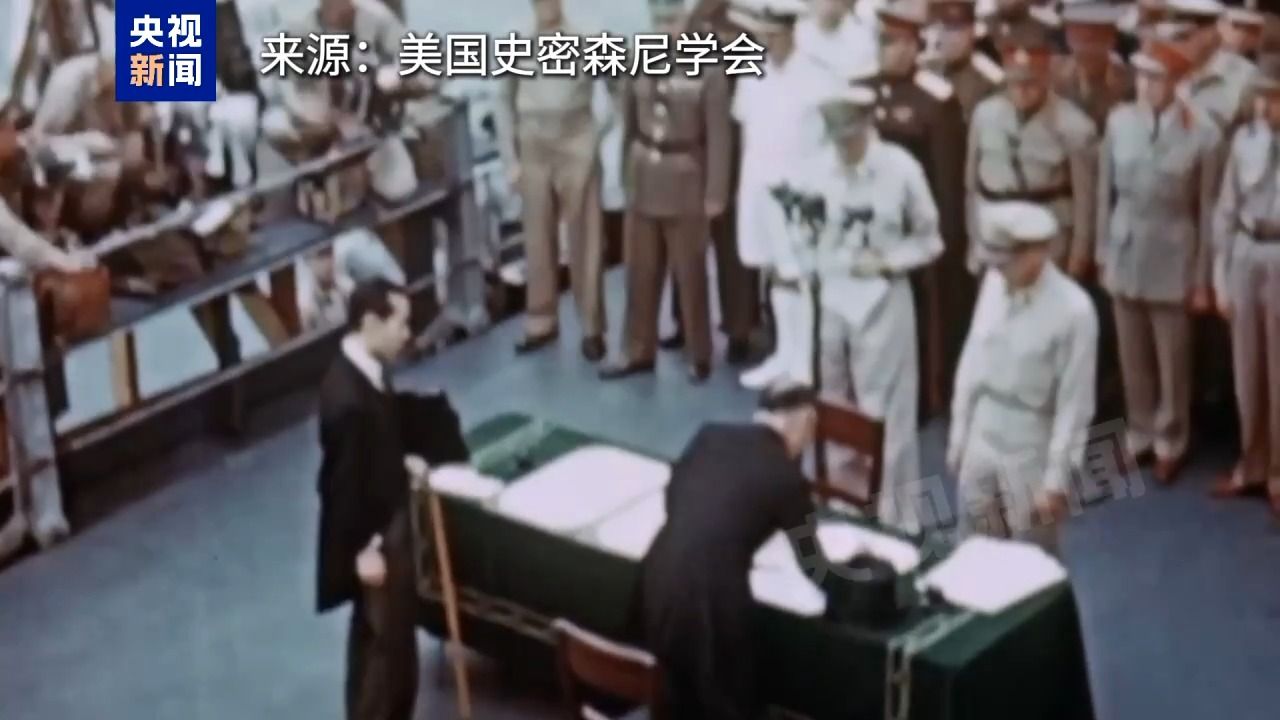 1945年9月2日,泊于东京湾的美国战舰密苏里号上,在包括中国在内的9个受降国代表注视下,日本在投降书上签字。
