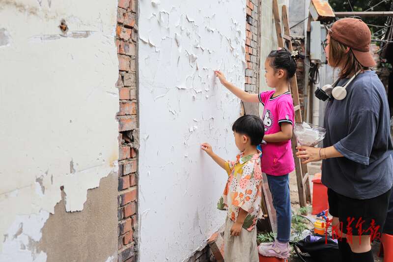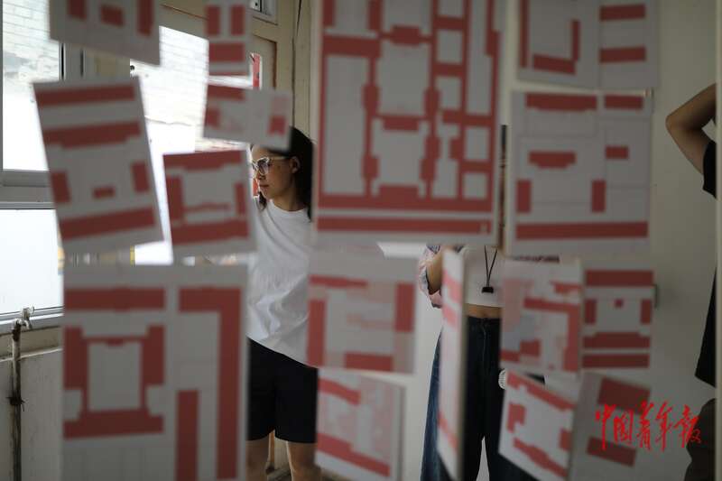展览的另一边,地产中介申浪正用记号笔在某处墙上写着“拆”字。展览场地是他无偿提供给师生们的,这个院子之后会作为酒吧餐厅的选址出租。在申浪看来,学生们的实验偏理想化,想要出租使用,仍需二次改造。“虽然有些设计还不能完全落地,但是一切都在发展迭代中。”申浪说。