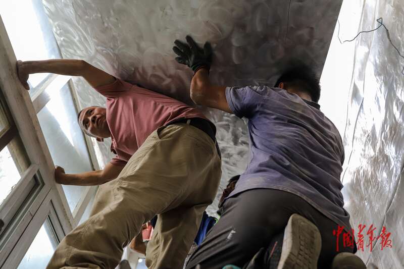 七月的北京雨天不断。冯嘉莹和她的伙伴有些焦虑,怕影响了屋顶的施工。她们从香港远道而来,要为东四十条附近胡同里的一处民居重新设计屋顶。