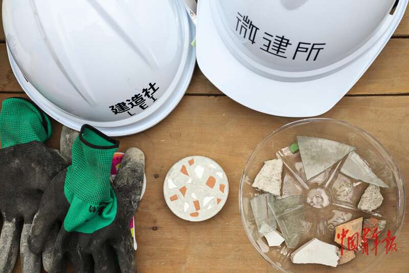 大雷是制作再生砖小组的唯一成员。在项目调研阶段,她和朋友以租户身份联系多个中介,得以真正进到院子里。大雷发现,一些居民经常把用过的砖和其他建筑材料堆在院子里,一方面是由于建筑垃圾回收困难,另一方面是人们想着总有一天会再次使用它们。“不如把这些建筑垃圾打碎再重组,成为可以投入使用的材料。”大雷说道。