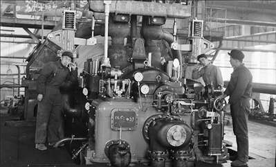 上世纪50年代,哈尔滨汽轮机厂生产制造的国内首台2.5万千瓦汽轮机试车画面。