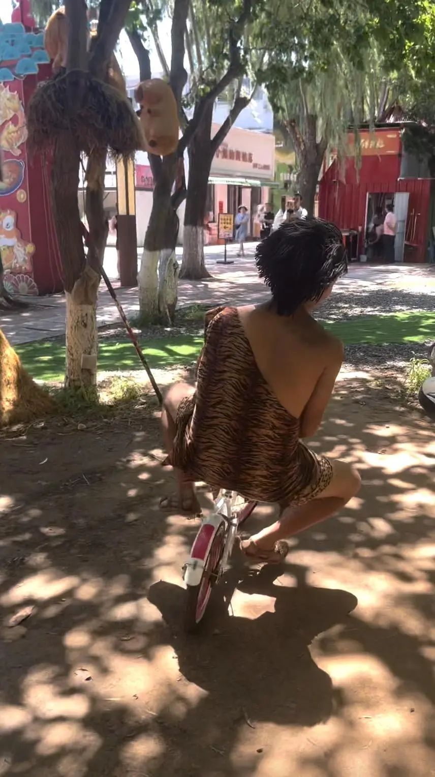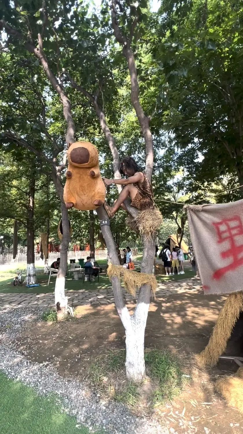 一名扮演“野人”的大二学生小李告诉极目新闻记者,他就是7月5日“上岗”的,已经坚持了一个月,演“野人”既好玩还能挣钱,他计划一直演到开学。