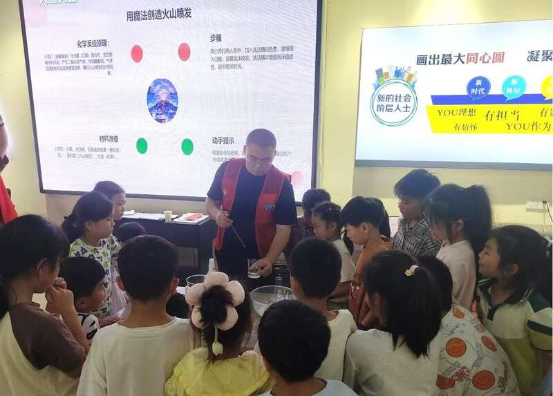 各乡镇街道团组织动员青年大学生志愿者,依托界首读书会活动品牌,将课业辅导、科学实验、阅读分享、创意手工等服务延伸至基层末梢。