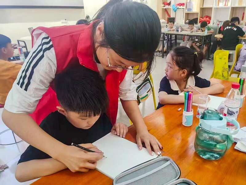 界首顾集镇胡湾村的读书分会同样热闹,大学生志愿者为辖区青少年儿童策划好书推荐、科普讲座、经典诵读、写作辅导等活动;在东城街道刘黄社区,来自安徽农业大学的大学生志愿者团队为辖区少年儿童提供暑期课业辅导……归乡的大学生纷纷投身暑托志愿服务,以知识力量赋能基层实践。