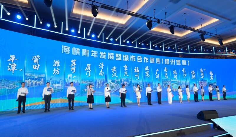 连心汇上,福州市出台支持建设“海峡青年发展型城市”的第二批举措,十条措施持续优化创业、教育、交通、婚恋、文旅等服务配套,推动青年发展政策从“有”到“优”、从“覆盖”到“提质”深化升级,切实提升两岸青年在福州生活的幸福感与归属感。同时,为进一步汇聚城市力量,为两岸青年提供更为广阔的融合发展平台,来自福州、北京、重庆等17个城市的青联代表共同上台宣读《海峡青年发展型城市合作宣言(福州宣言)》,在与会嘉宾见证下,17个城市启动海峡青年发展型城市共建合作,并发布了一批“研学游”精品线路和优质就业实习岗位。