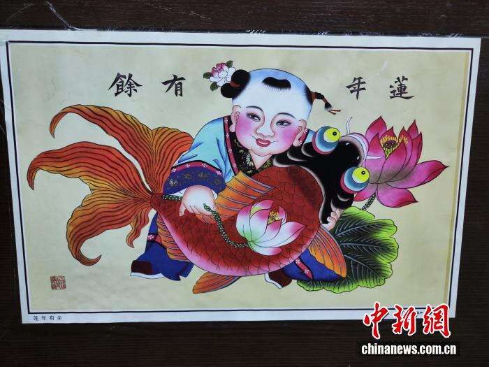杨柳青民俗文化馆中的《莲年有余》。中新网 刘越 摄