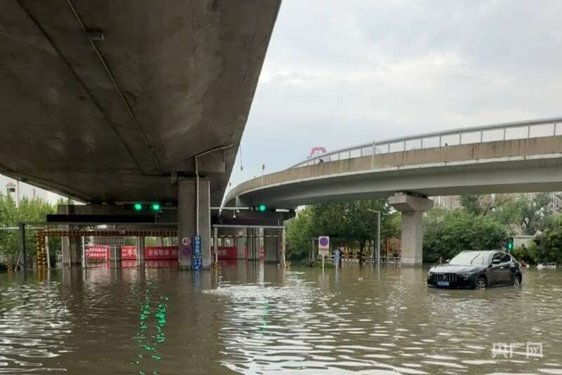 郑州市一马路与陇海东路交叉口隧道已被雨水灌满(央广网记者 张丽娜 摄)