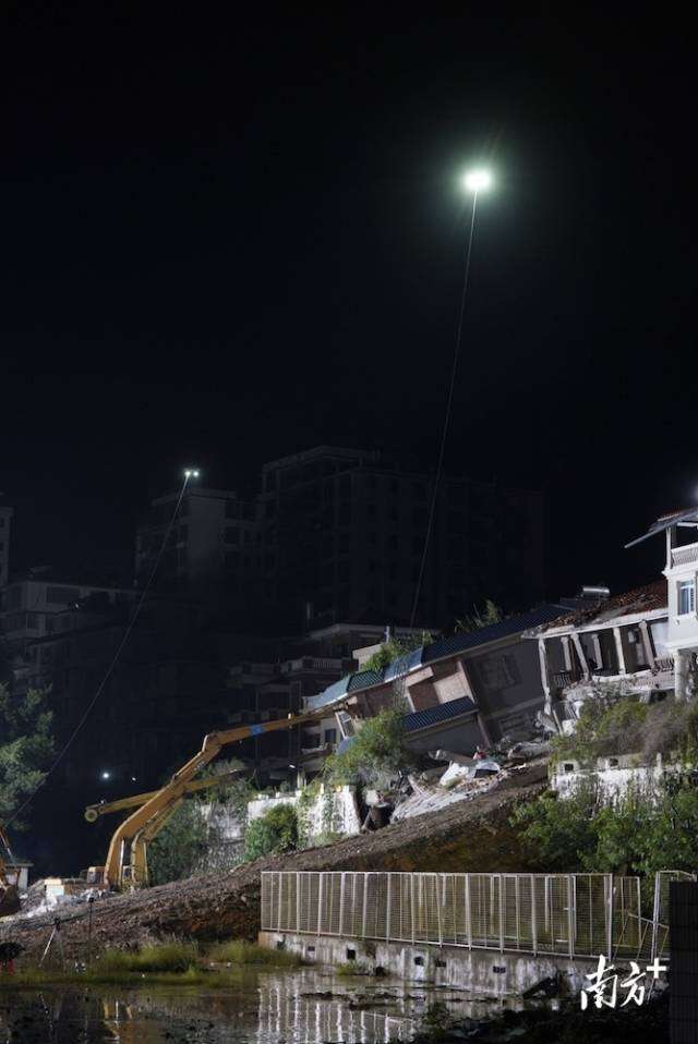 8月7日凌晨3时许,系留无人机照亮着救援现场。